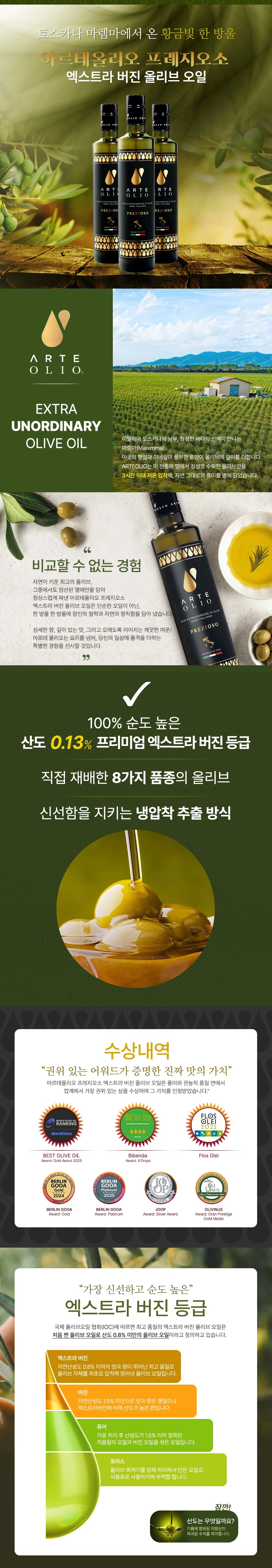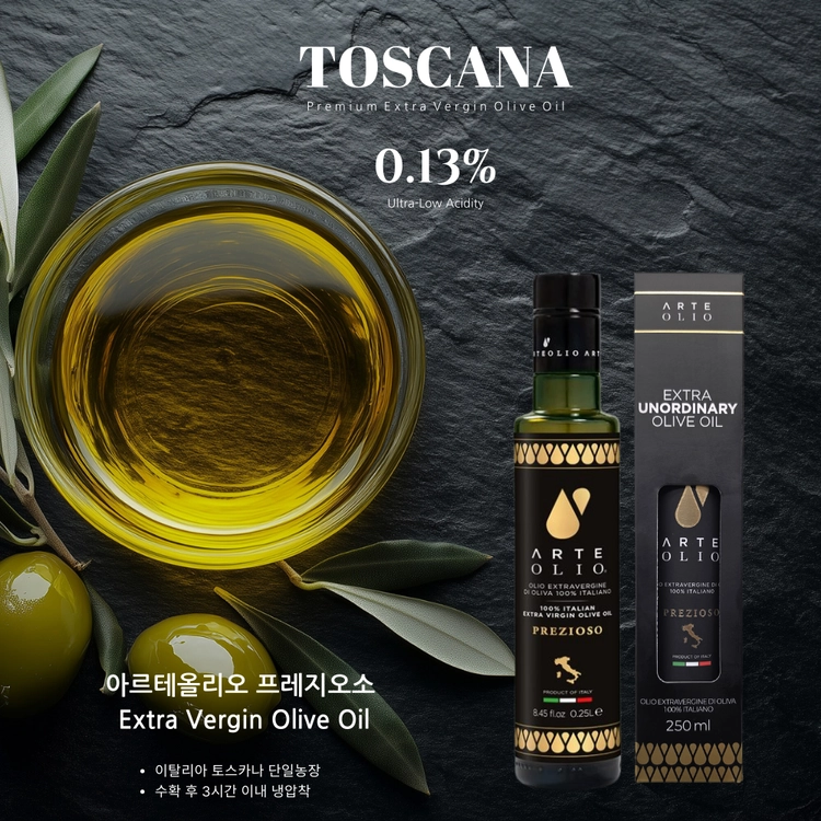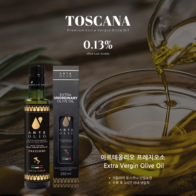 3시간내 압착, 과육의 풍미 그대로  |  산도 0.13%, 이탈리아 토스카나 지역 엑스트라 버진 올리브 오일 |  아르테 올리오 단독 구매는 배송 가능!