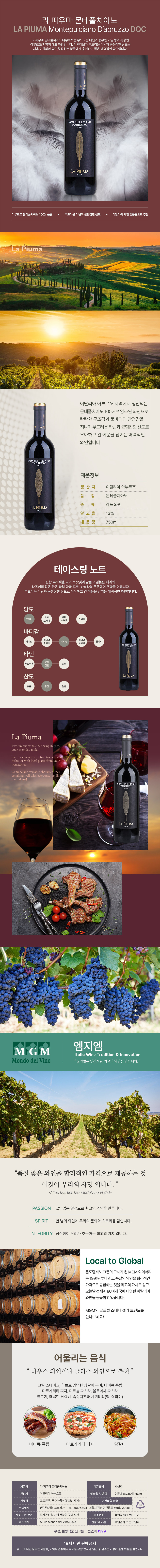 LA PIUMA MONTEPULCIANO D'ABRUZZO DOC | 생산지 아부르쪼 | 품종 몬테풀치아노 | Alc. 13%