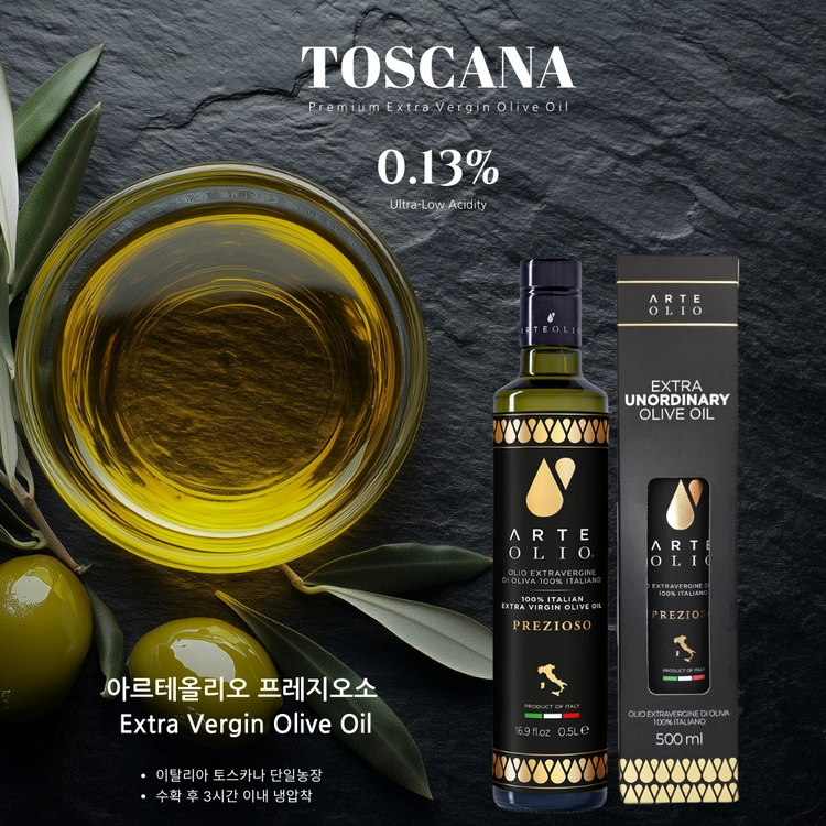 3시간내 압착, 과육의 풍미 그대로 | 산도 0.13%, 이탈리아 토스카나 지역 엑스트라 버진 올리브 오일 | 아르테 올리오 단독 구매는 배송 가능!